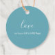 Ces étiquettes de faveur circulaires uniques présentent ma fleur d'oiseau de paradis tropicale originale à l'aquarelle dans des nuances de bleu, de vert et de turquoise. La carte se retourne sur une couleur bleu turquoise avec de la place pour la personnalisation. Utilisez-les pour des cadeaux de proposition de demoiselles d'honneur, des remerciements et des faveurs de mariage ou de fête. Pour voir les articles assortis, visitez DoTellABelle sur Zazzle.