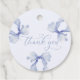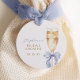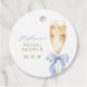 Terminez vos faveurs de fête avec une touche d'élégance en utilisant ces étiquettes avec un nœud bleu poussiéreux sur un verre à champagne doré — une façon douce de dire merci.
