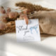 Étiquettes de remerciement modernes pour une fête prénuptiale avec un nœud aquarelle dessinée à la main en bleu poussiéreux. Parfait pour une fête prénuptiale coquette "Something blue avant de me marier". Modifiez facilement le texte et la date et rendez nos sacs de faveur supplémentaires spéciaux.