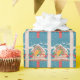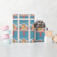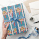 Un joli papier de rapping de vacances bleu avec le motif d'un couple cardinal debout devant leur maison d'oiseau festive. © ArianeC Illustrations-Tous droits réservés