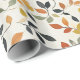 Papier enveloppant avec un charmant motif de feuilles d'automne dans des tons chauds d'orange, jaune et vert foncé sur un arrière - plan clair. Idéal pour les cadeaux d'automne et les fêtes de saison.