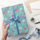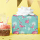 Faites-en un Noël rétro - Flamants roses de Noël roses don de chapeaux de Noël sur un arrière - plan Aqua avec palmiers blancs et starbursts rétro - Très Floride, Extrêmement rétro