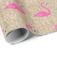 De jolis flamants roses sur une plage de sable arrière - plan décorent ce papier d'emballage tropical pour fêtes, ce qui le rend parfait pour un anniversaire, une douche ou toute occasion spéciale estivale.