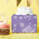 Ce joli papier d'emballage est violet avec les mots Joyeux Noël en blanc, et beaucoup de flocons de neige. Vous pouvez changer les mots et ajouter les vôtres.