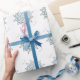 Le papier d'emballage de Noël montré dans le blanc avec les flocons de neige mignons impriment. Texte de Noel partout. Customisez cet article ou l'achetez comme est.