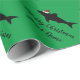 Drôle Santa Claus requin poisson papier d'emballage personnalisé. Roulettes cadeaux personnalisées avec votre salutation de vacances et votre nom. Cool de conception d'animaux de mer tropicaux avec typographie script. Couleur arrière - plan verte ou personnalisée. Amusant pour petits et grands. Idéal aussi pour les pêcheurs, marins, capitaines de bateaux, skipper etc.