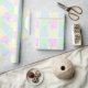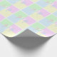 Le genre révèle du papier d'emballage de fête en bleu, rose, vert et jaune. Ponctuée d'un point d'interrogation blanc, bleu et rose.