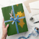 Cadeau Gold Holly sur papier d'enveloppement vert foncé