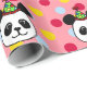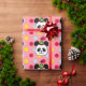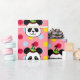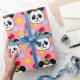 Papier d'emballage de grand de visage de panda anniversaire de bande dessinée. Bande dessinée drôle et délicieuse d'ours panda avec le motif de pois coloré. Bande dessinée heureuse et mignonne de panda créée par Naomi Ochiai du Japon.