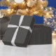 Cadeau Gris avec papier d'enveloppement à rayures orange