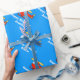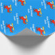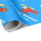 Hélicoptère rouge personnalisé de jouet du papier d'emballage | d'anniversaire. Conception de bande dessinée de couperet de jouet avec le nom personnalisable de l'enfant. Enveloppe de cadeau de thème d'aviation pour le jeune garçon ou le petit bébé. Couleur bleue d'arrière - plan personnalisable. Idée mignonne pour la ?ère partie d'anniversaire ou de baby shower. Graphiques du jouet des enfants.