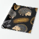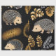 Papier d'enveloppement coloré de hérisson mignon. Hérisson debout au milieu du papier avec des feuilles d'or et d'argent tout autour. Coupez peu de papier d'emballage naturel et de la faune. Papier pour enfant pour anniversaire ou autre.