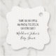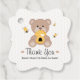 Un ours en peluche parfaitement sucré, merci pour l'étiquette de faveur avec un ours tenant joyeusement une ruche en nid d'abeille avec un coeur blanc et des petites abeilles au miel l'entourant. Un motif à pois blanc et jaune pâle à l'avant et à l'arrière. Ajoutez un message spécial à vos invités au dos avec le nom de l'événement. Customiser le libellé pour un baby shower, un baby shower ou un anniversaire de mariage. Oeuvre © Chrissy H. Studios, LLC. Tous droits réservés.