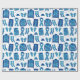 Cadeau Jacquard Bleu Motif Objets Papier d'enveloppement