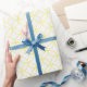 Papier d'emballage conçu avec un motif circulaire superposé, jaune sur blanc. Customisez facilement l'arrière - plan blanc.