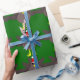 Ce papier d'emballage génial présente un dessin amusant d'une dinde de Noël aux grands yeux noirs, un petit bec jaune et des plumes de queue qui collent. Les pieds sont orientés dans des directions opposées, ce qui rend la dinde maladroite. La dinde porte un chapeau de Père Noël rouge et blanc et est prête pour Noël.