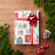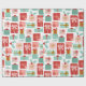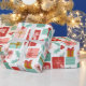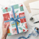 Ce papier d'emballage contient des cadeaux de Noël emballés dans un emballage rouge, rose et bleu-vert.