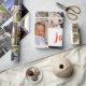 Téléchargez 24 de vos photos préférées pour créer un papier d'emballage unique. Un cadeau en soi, parfait pour les grands-parents. Une photo ici a été remplacée par une lettre "Joy" de style brushy (utilisez ceci pour noël ou remplacez par votre propre image). Les photos se répéteront après ce regroupement de 24. Chaque photo rectangle est un ratio 4x6 et il y a 4 carrés. Cliquez sur "customiser" et "Modifier" pour recadrer l'image. Utilisez les boutons - + pour redimensionner ou sélectionner l'image et utiliser des points d'ancrage. Vous pouvez déplacer des images avec votre souris ou les boutons fléchés en regard de "Modifier"