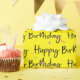 Fun joyeux texte d'anniversaire police de script avec confetti de fête coloré sur l'arrière - plan jaune. La couleur Arrière - plan peut être modifiée.