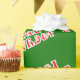 Papier écorce vert avec les mots cherokee pour "Joyeux Noël" en caractères séquoyens rouges avec bordure blanche.