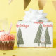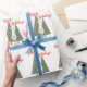 Vous aimerez ce papier d'emballage motif de Noël élégant, moderne et mignon ! Une scène hivernale avec un gnome scandinave aux pattes maigres tenant un oiseau bleu devant les pins. La citation "Happy Holidays" est en très rouge typographie.