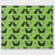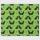 Cadeau Kitty noir rétro sur papier d'emballage vert