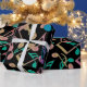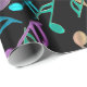 La grande musique note le papier d'emballage 4. Des notes musicales colorées, avec des nuances de vert, bleu, pourpre, d'or et de rose, sont éclaboussées à travers un arrière - plan noir. Perfectionnez pour envelopper un cadeau pour votre musicien ou mélomane préféré.