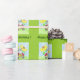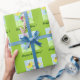 Un papier d'emballage d'anniversaire vert enfant avec l'illustration en carreaux d'une coccinelle lisant un livre sous deux fleurs jaunes et les mots "Joyeux anniversaire" écrits en dessous. Parfait pour un anniversaire de printemps :) © ArianeC Illustrations