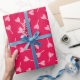 Ce rouleau de papier d'emballage présente des lollipops simples et modernes en forme de coeur rose éparpillés sur un arrière - plan rouge. Parfait pour les cadeaux de la Saint-Valentin ou d'anniversaire.