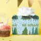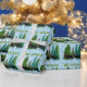 Oie taureau et wapitis en silhouette portant des chapeaux de Père Noël rouges et blancs se promenant dans la forêt. Des flocons de neige répétés en bleu et turquoise créent une toile de fond hivernale. Le texte dit : "Sois Jolly." L'art du Whimsical par Melissa J Barrett