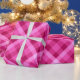 Un rouleau de papier d'emballage avec un design motif en plaid mignon dans le magenta rose.