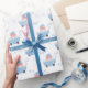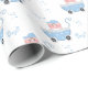 Ce papier d'emballage de bébé mignon comporte un bébé mignon dans un casquette bleu et un boguet bleu de poussette de polkadot entourés en flottant les étoiles bleues avec les mots que c'est un garçon ! ! Customisez ce papier d'emballage de bébé mignon avec votre choix de texte et de message pour une grande surprise de baby shower !