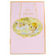Il s'agit d'un design vintage pour le baby shower avec un bébé sucré dans deux dessins avec des cygnes. Les couleurs principales sont le jaune, le rose et l'orange. Vous pouvez aussi customiser la couleur du sac en fonction de votre goût.
