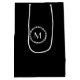 Garçons d'honneur ou meilleur sac de cadeau de Merci d'homme, avec l'initiale décorée d'un monogramme, à l'intérieur d'un cercle embelli élégant. Le sac de cadeau témoin est montré avec un arrière - plan noir. Personnalisez la couleur d'arrière - plan, la couleur des textes et la couleur de police. Cliquez sur la "personnaliser il".