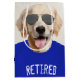 Golden Retriever chien avec t-shirt bleu et lunettes de soleil d'aviateur humour pour la retraite. Le texte est modifiable. Arrière - plan peut être modifié.