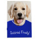 Golden Retriever chien avec t-shirt bleu pour la retraite. Le texte est modifiable. Arrière - plan peut être modifié.