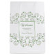 Vignes à fleurs blanches entourent le message de bienvenue.