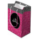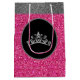 Ce sac cadeau de la couronne en argent est montré en Pink & Silver faux parties scintillant-look et dans la taille moyenne. Une couronne de tiare gris argent est perchée au centre de chaque côté du dos dans un ovale avec une place pour le texte customisé si vous préférez. Le sac a des poignées. Ajoutez du papier de tissu de roses blanches et/ou une étiquette de faveur du concours de notre pour cette présentation parfaite!