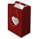 Le sac en papier est une teinte rouge vibrante, symbolisant l'amour et la passion. A l'avant, un design en forme de coeur est finement imprimé avec des motifs délicats, apportant une touche de romantisme. A l'intérieur du coeur, les mots "Heureuse Sainte-Valentin" sont magnifiquement écrits en caractères cursifs élégants. Le sac est parfait pour le don, avec une sensation douce et aimante qui reflète la chaleur et l'affection de l'occasion.