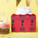 Papier d'emballage de vacances avec texte noir qui dit We Wish You a Joyeux Noël en forme d'arbre de Noël! Vous pouvez customiser l'arrière - plan rouge comme n'importe quelle couleur que vous voulez.