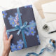 Le papier d'emballage avec la photo du myosotis bleu fleurit