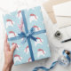 Papier d'emballage moderne et minimaliste de Noël avec ours polaires portant des foulards rayés rouges. Vient dans un rouleau continu. Parfait pour Noël / Fêtes. Sur un arrière - plan bleu clair avec plus d'options de couleur disponibles dans la boutique de studio clairement tangled. Est également disponible dans des jeux de feuilles motifs mixtes.