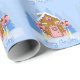 Un joli papier d'emballage bleu Holiday avec le motif d'une maison en pain d'épices fantaisiste. Ajoutez votre propre texte ou gardez-le tel quel. © ArianeC Illustrations-Tous droits réservés