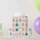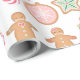 Ce papier d'emballage comporte un motif de biscuits en pain d'épices décorés sur un arrière - plan blanc éclatant.