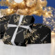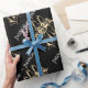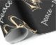 Paix ! Golden Angels Wrapping Paper présente des anges dorés contemporains sur un arrière - plan de noir. Un emballage unique pour vos cadeaux de vacances.