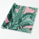 Feuillage de palme tropicale et papier d'emballage d'impression rose