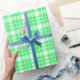 Un papier d'emballage conçu avec un motif plaid vert clair et blanc. Customisez le arrière - plan blanc entre autres options.