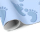 Illustration graphique des empreintes de bébés bleues pastel sur du nouveau papier d'emballage pour bébés.