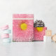 Enveloppement brillant avec des fleurs de marguerite rose et arrière - plan personnalisé pour n'importe quelle occasion= Joli emballage cadeau.