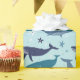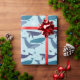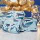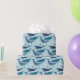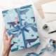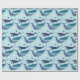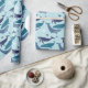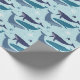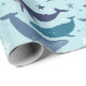 Trois grandes baleines bleues nageant avec leurs amies d'étoiles de mer ornent ce papier d'emballage. Le corps des baleines a une texture légère qui apporte un intérêt supplémentaire.